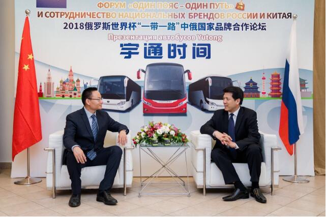 当地时间7月2日下午,2018世界杯“一带一路”中俄国家品牌合作论坛在莫斯科红场古姆会议中心举行,郑州宇通客车作为中国品牌代表在论坛上奉献了精彩的“宇通时间”,中国驻俄罗斯大使李辉出席论坛,并盛赞“宇通模式”。