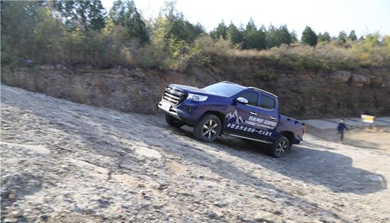 之后是一个非铺装坡道,这种坡道除了考验车辆的动力之外,对抓地力也有着不小的要求。本次试驾的凯程F70配备的是Giti 4X4 AT70轮胎,抓地力非常不错,在体验非铺装坡道时没有任何打滑的情况出现。能够轻松爬过非铺装的坡道,与长安凯程F70的四驱系统也是密不可分的,长安凯程F70搭载博格华纳智能四驱系统,配有手动调节的电控分动箱,可手动选择2H/4H/4L驱动模式,当打开4L模式后,可以感受到长安凯程F70爬坡时轻松了不少。此外长安凯程F70还配有坡道辅助功能,在坡道起步时更加轻松,更加安全。
