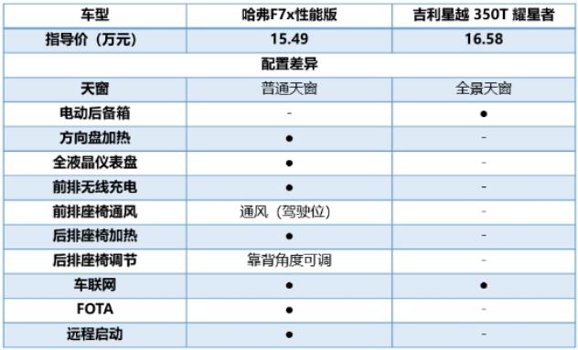 在能够提升驾乘舒适的配置上,哈弗F7x依旧技高一筹。前排无线充电、前排座椅通风、后排座椅角度可调节、远程启动等功能应有尽有,而吉利星越均不具备这些功能。如乘车过程中手机没电了,又正好没带充电线,便可以通过无线充电功能,为手机加满电量。再比如经过太阳直晒,夏日的车内温度可以说是非常感人,哈弗F7x可以通过远程控制直接启动空调,提前给车辆降温,提高出行舒适性。不仅如此,长时间保持一个坐姿难免不舒服,通过后排座椅调节,可以令坐姿更加伸展,舒适性更高。而吉利星越不具备此项功能,在人性化上相比哈弗F7x略有欠缺。