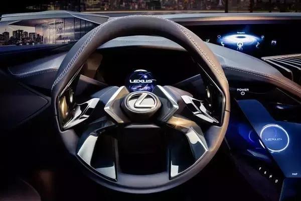 内饰方面, 最亮眼的要数它的中控台布局,带有强烈的科技氛围。以驾驶者为核心的布局,显得极具驾驶乐趣一台车,具有较高的视野。内饰细节方面,新车的中控台两侧配有一对液晶显示屏,分别能显示车身两侧的影像,以取代后视镜的作用。而驾驶席右侧还配有两组液晶显示器,全玻璃化座舱预示着雷克萨斯UX未来的设计方向和理念。值得注意的是雷克萨斯UX的车内并未看到任何物理按键,中控台采用晶体结构,提供全息3D体验,驾驶者可以通过触控交互来控制空调、多媒体系统等。外加一个透明悬浮的球体代替了传统的仪表盘,显示速度、油耗等信息。